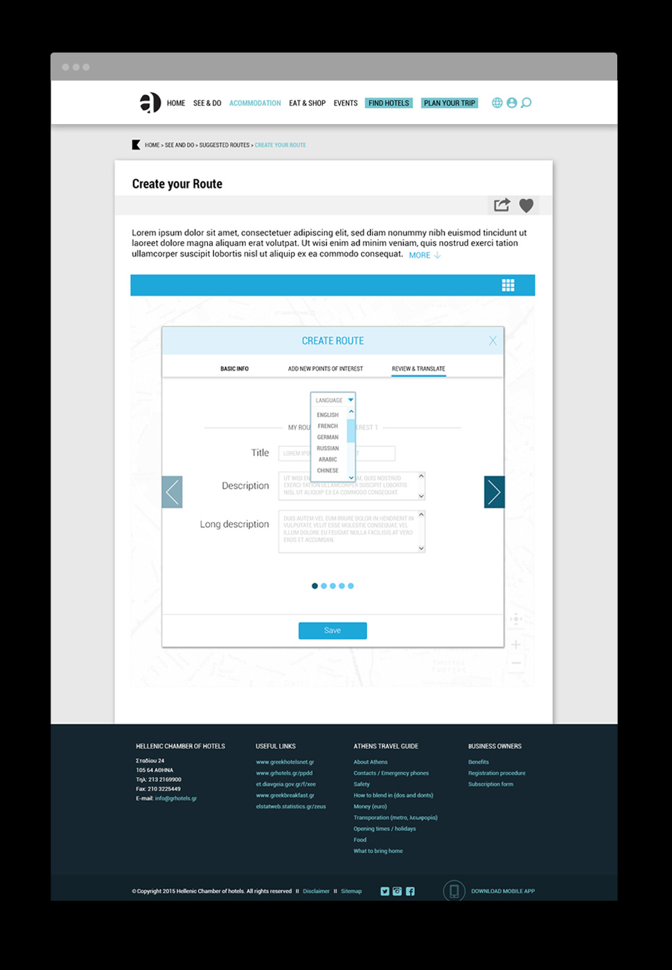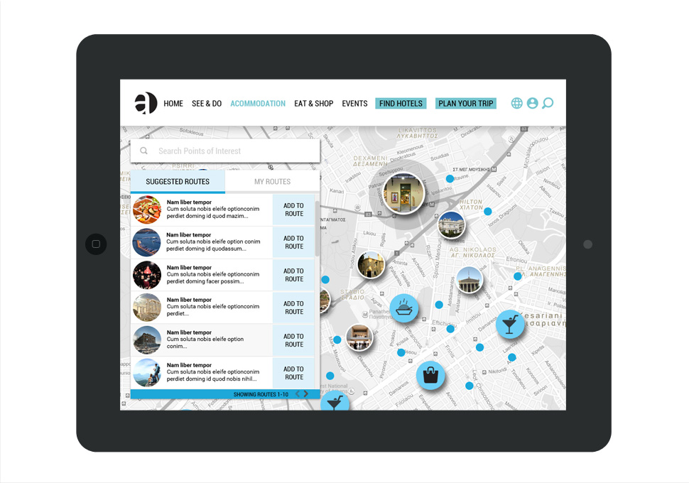 Collaborating with consulting-to- government chamber of hotels organization and Greek Geeks on designing the Athens official cityguide portal and tablet application with multilanguage support for travel industry including multiple partners (hotels, businesses and tour operators), and targeting European, Russian, Arabic and Chinese audiences (trip planning 2015-2016).